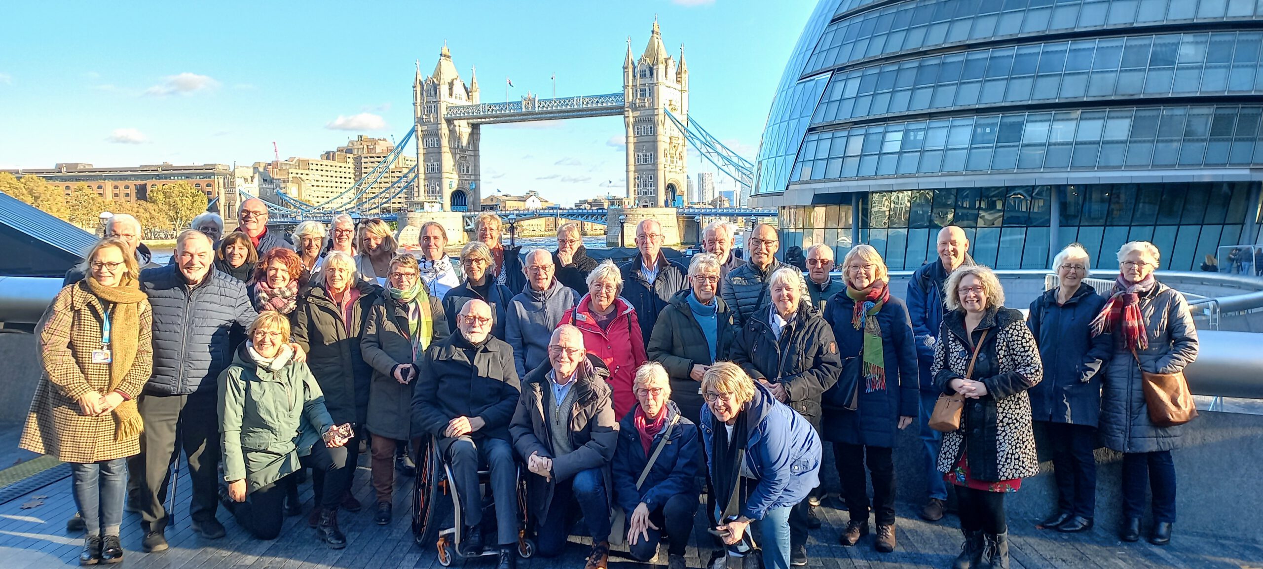 De groep telde totaal 44 mensen, deels per trein, deels per vliegtuig. Een stadsexcursie, de Tower of Londen, met de Crown Jewels, alle onder leiding van gidsen.